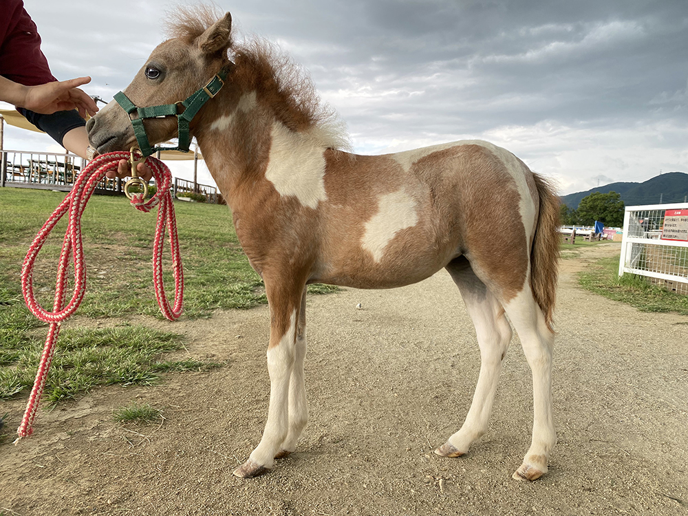 【馬名】 イーゼル 【生年月日】 2022/05/14 【性別】 メス 【毛色】 栗駮毛 【体高】 69cm ※2022年8月現在 【性格】 人懐っこい。 【販売価格】 ¥800,000